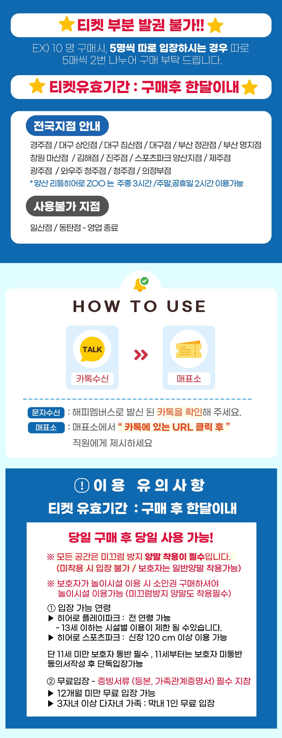 - 부분 사용이 불가한 티켓으로 구매시 이용하는 수량만큼 나누어 구매 부탁드립니다.