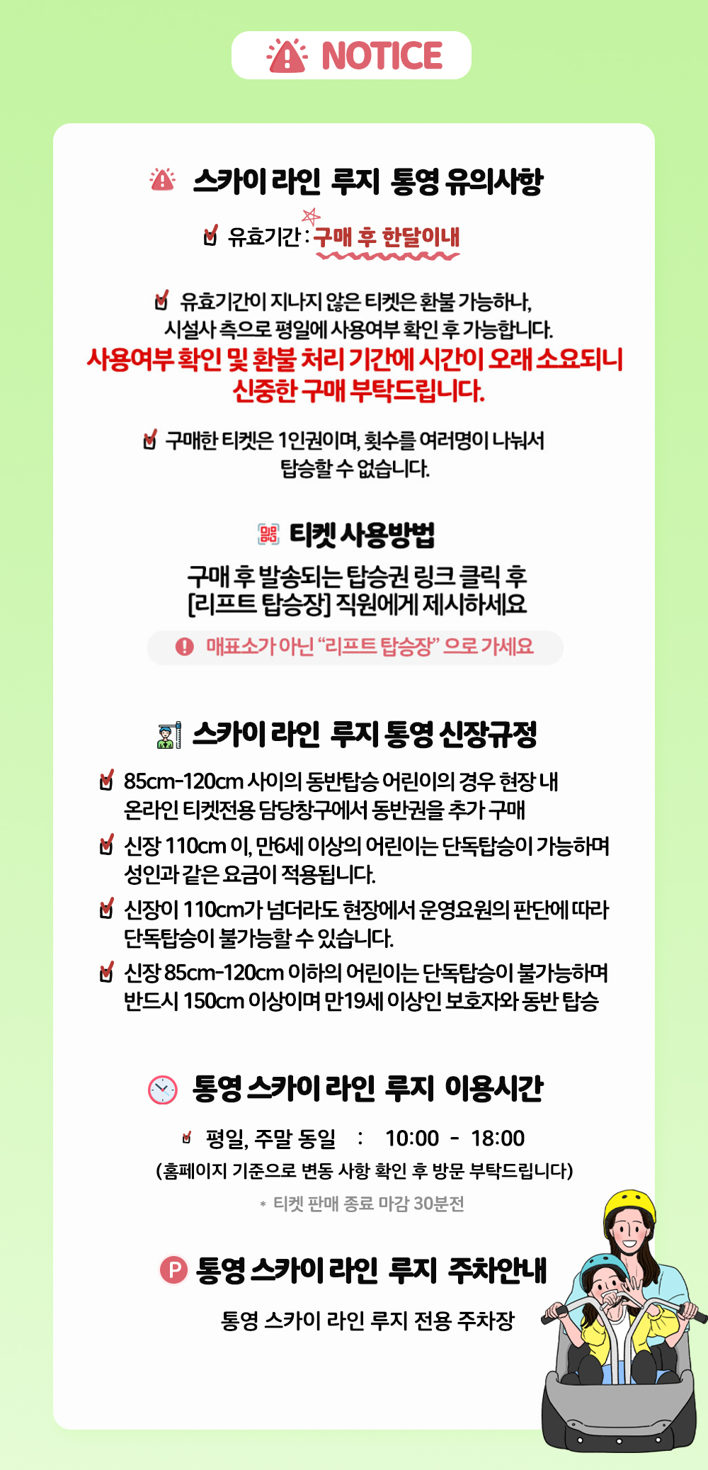 - 유효기간이 지나지 않은 티켓은 환불 가능하나, 시설사 측으로 평일에 사용여부 확인 후 가능합니다.
