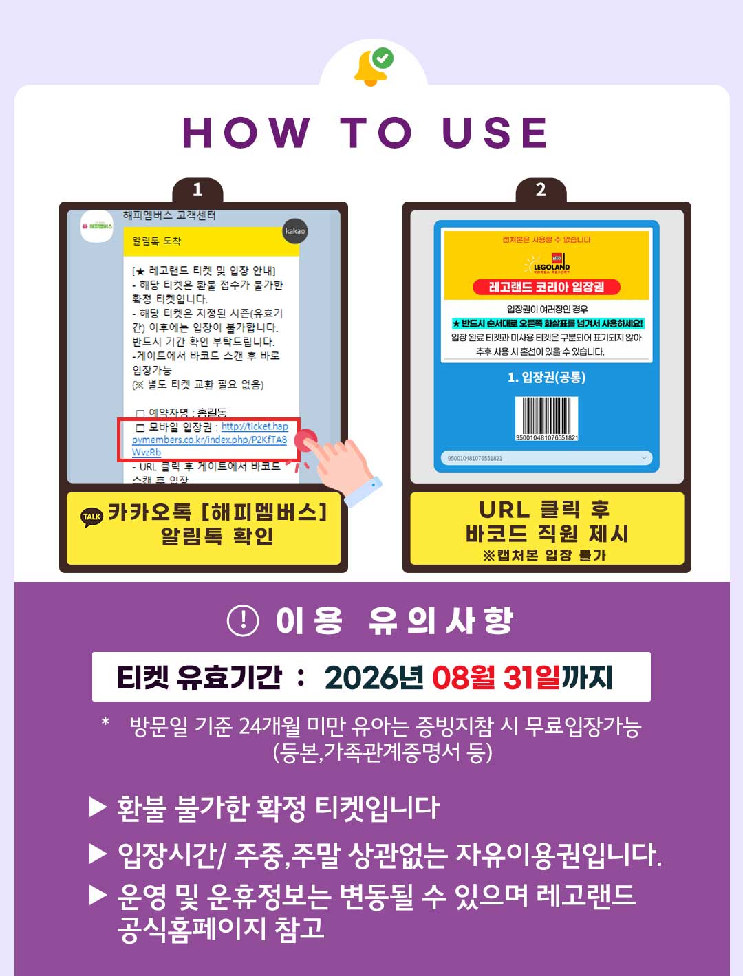 보호자 동반 입장 : 만 12세 이하의 어린이는 만 16세 이상의 보호자 동반 필수