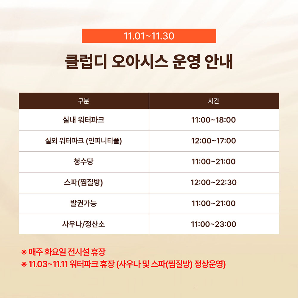 11월 1일~11월 30일까지 입장가능 / 통합권[워터파크/스파&찜질]
